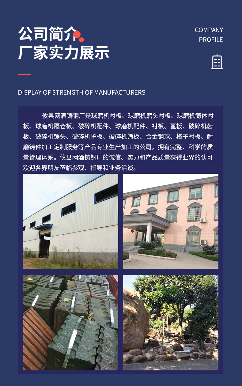 格子板一般装在格子型球磨机当中,格子型球磨机主要由筒体、给矿器、排矿器、传动装置、轴承和润滑系统等六个部分组成。格子型球磨机中磨细的物料随矿浆通过隔板上的排矿小孔排出,排料端的矿浆面低于中间轴颈的矿浆流出面,属于低水平、强制排矿。格子型球磨机由于格子板的存在,可以多装球,而且便于装小球。格子型球磨机生产率较溢流型球磨机约提高20%~30%,尽管功耗比同规格溢流型高,但比功耗低。